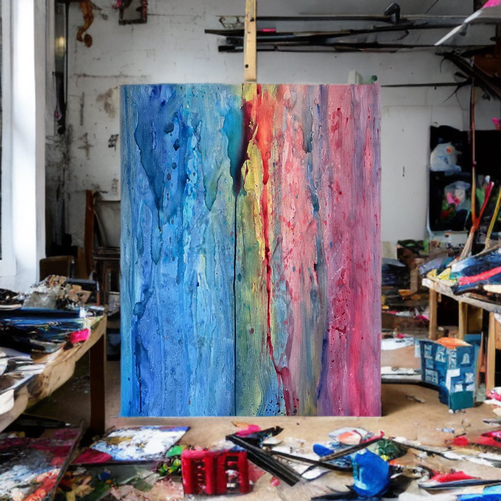 - Materials: Acrylic and Watercolor on Canvas