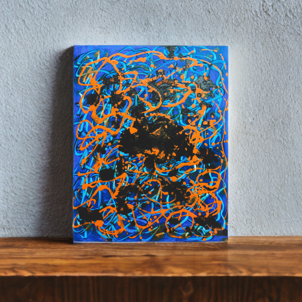 This painting explores the process of letting go, transforming sharp emotions into calm reflection. The brush moves smoothly across the canvas, echoing a Zen approach: embracing life with simplicity, flowing over what is not essential, and finding ease amid past wounds.